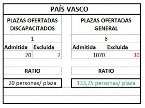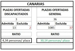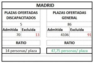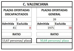 A continuación publicamos el ratio por plaza según ámbito que hemos sacado de los listados publicados: