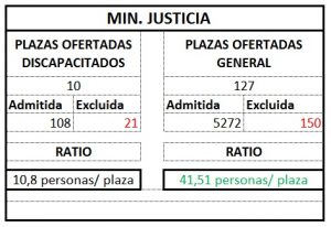 Según los listados completos publicados en la página Web del Ministerio de Justicia, se han presentado 17.747 instancias; de las cuales 17.260 han sido admitidas y tan solo 487, excluidas. A éstas, habrá que añadirles las que se presenten debido a la omisión de estas listas publicadas en el plazo de 10 días hábiles para la subsanación de exclusión u omisión, que comenzó el día hábil siguiente a la publicación del BOE anteriormente mencionado.