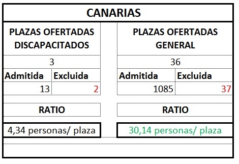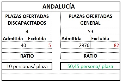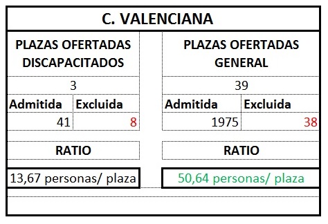 A continuación publicamos el ratio por plaza según ámbito que hemos sacado de los listados publicados: