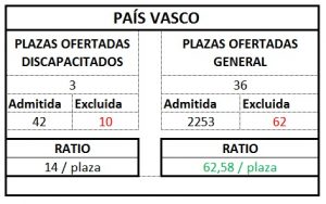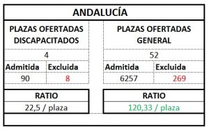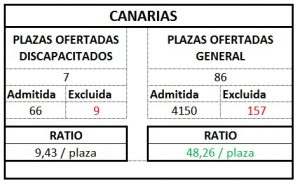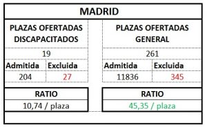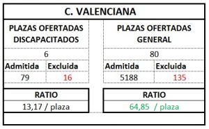 A continuación publicamos el ratio por plaza según ámbito que hemos sacado de los listados publicados: