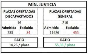 Según los listados completos publicados en la página Web del Ministerio de Justicia, se han presentado 44.563 instancias; de las cuales 43.006 han sido admitidas y tan solo 1.557, excluidas. A éstas, habrá que añadirles las que se presenten debido a la omisión de estas listas publicadas en el plazo de 10 días hábiles para la subsanación de exclusión u omisión, que comenzó el día hábil siguiente a la publicación del BOE anteriormente mencionado.